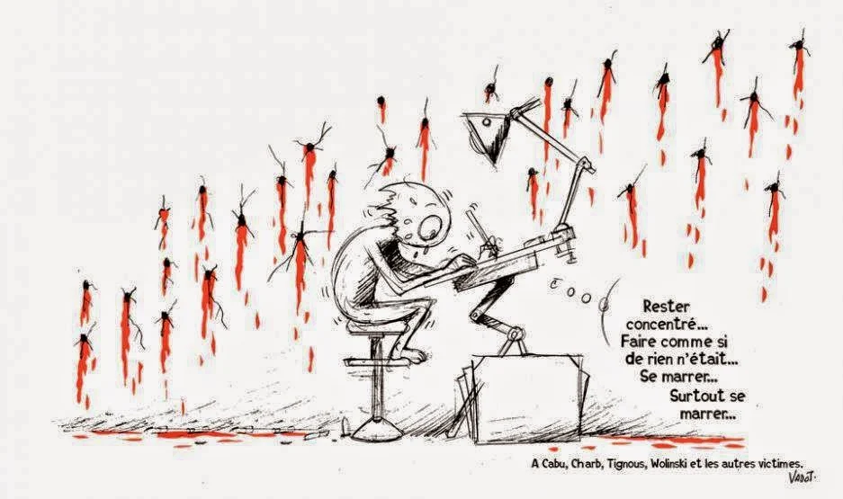 Persécutés des années durant et en plus on leur fait l'injure de taire la conviction profonde qui animait TOUS leurs dessins ? Pour mémoire, on ne se voile pas pour le deuil, non plus, paradis et prière nous offensent. Vous êtes priées de ne pas nous insulter ! C'est même interdit La première qui me colle un dessin je la signale ;O) Et que dire des jobards de dignitaires religieux qui ont condoléé à tout va nos massacrés athées, non pas par compréhension politique mais bien par une absurde révérence envers la vie divine. Rien pas un sous de réflexion politique, sont-ils dignes de diriger des femmes et des hommes ? François aux Philippines trouvant normal de casser la gueule à celui qui insulte sa mère justifie donc les attentats ? Je me gondole pendant que mes larmes coulent.