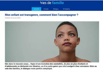 "La page du magazine Vies des familles du site internet caf.fr intitulée «Mon enfant est transgenre. Comment bien l’accompagner?» , mise en ligne le 25 janvier 2023, présente la théorie de l’affirmation du genre comme un fait avéré. Or, non seulement cette théorie ne repose sur aucun fondement scientifique, mais en outre elle rejette une donnée biologique, scientifique, incontestable: l’espèce humaine est constituée de deux sexes..."