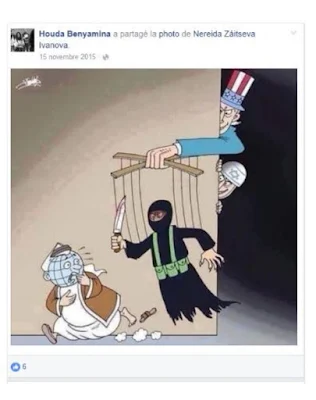 Choix sélectif toujours - Les exemptions restent évidentes par contraste à leurs cibles systématiquement  harcelées. En fait, toutes ses années durant au contraire des caricaturistes politiques, les croyances et leurs bedeaux ne sont secoués... Jusqu'au nikab promu, alors que la loi d'interdiction dans l'espace public est en vigueur, et l'état d'urgence établi. C'est donc une incitation à la sédition ?